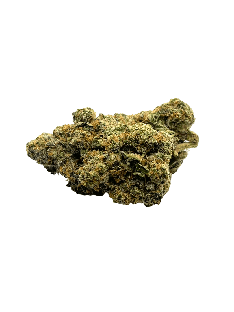Apple Fritter, also known as “Apple Fritters,” is a rare evenly balanced hybrid strain (50% indica/50% sativa) created through crossing the classic Sour Apple X Animal Cookies strains. Best known for making the High Times’ 2016 “World’s Strongest Strains” List, this baby brings on a hard-hitting high and super delicious flavor that will have you begging for more after just one taste. This bud has a super sweet fruity apple flavor with a lightly cakey vanilla exhale that’s just like a delicious fresh-baked apple fritter. The aroma is very similar, with an herbal effect to it, too. The Apple Fritter high starts almost as soon as you experience your first exhale, filling your mind with a rushing lift that pushes out any negative or racing thoughts almost immediately. As your cerebral state flies higher and higher, a tingly body high will wash over you, relaxing your aching muscles and leaving you feeling totally at ease with the world around you. In combination with its super high 22-28% average THC level, these effects give Apple Fritter an edge in treating those suffering from conditions such as insomnia, chronic pain, depression, mood swings and chronic stress. This bud has spade-shaped dark olive green nugs with deep purple undertones, vivid orange hairs and a coating of tiny white crystal trichomes.